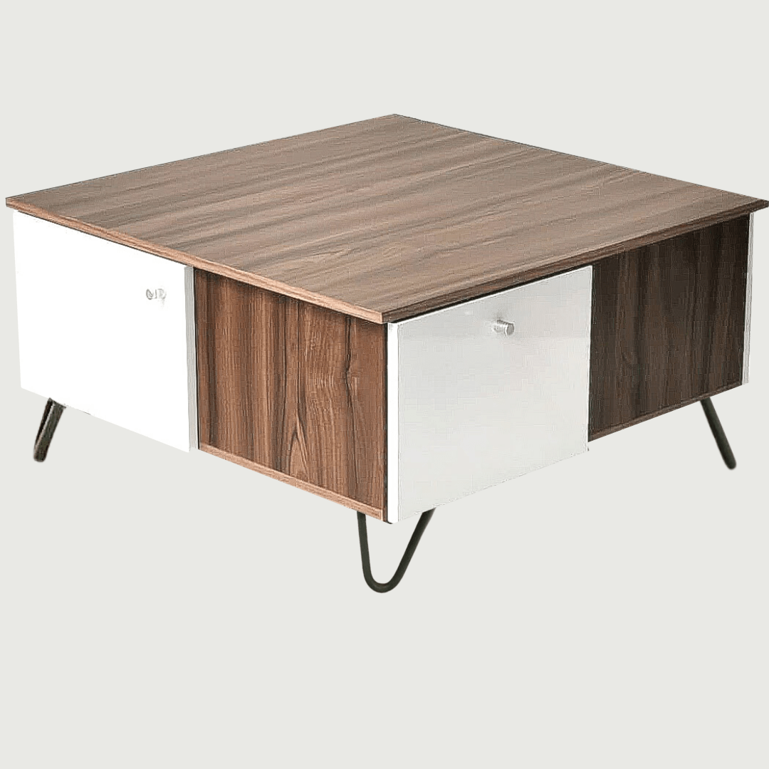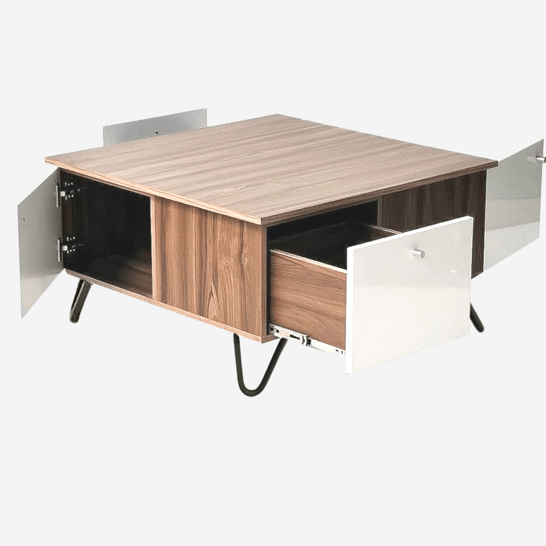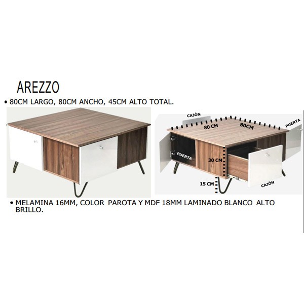 Mesa de centro de melamina de 16mm y mdf 18mm color blanco alto brillo y parota
